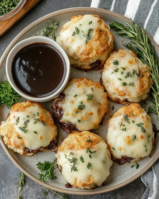 The result? Golden, buttery biscuits with a cheesy, beefy center—perfect for dipping into rich au jus.