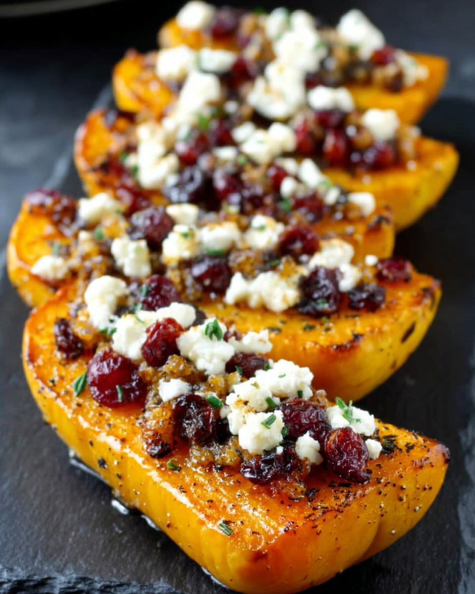 Roasted Butternut Squash with Cranberries and Feta Bliss