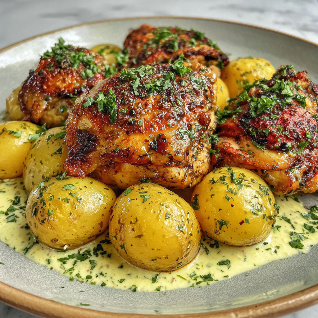 Roasted Mediterranean Chicken Thighs with Baby Potatoes