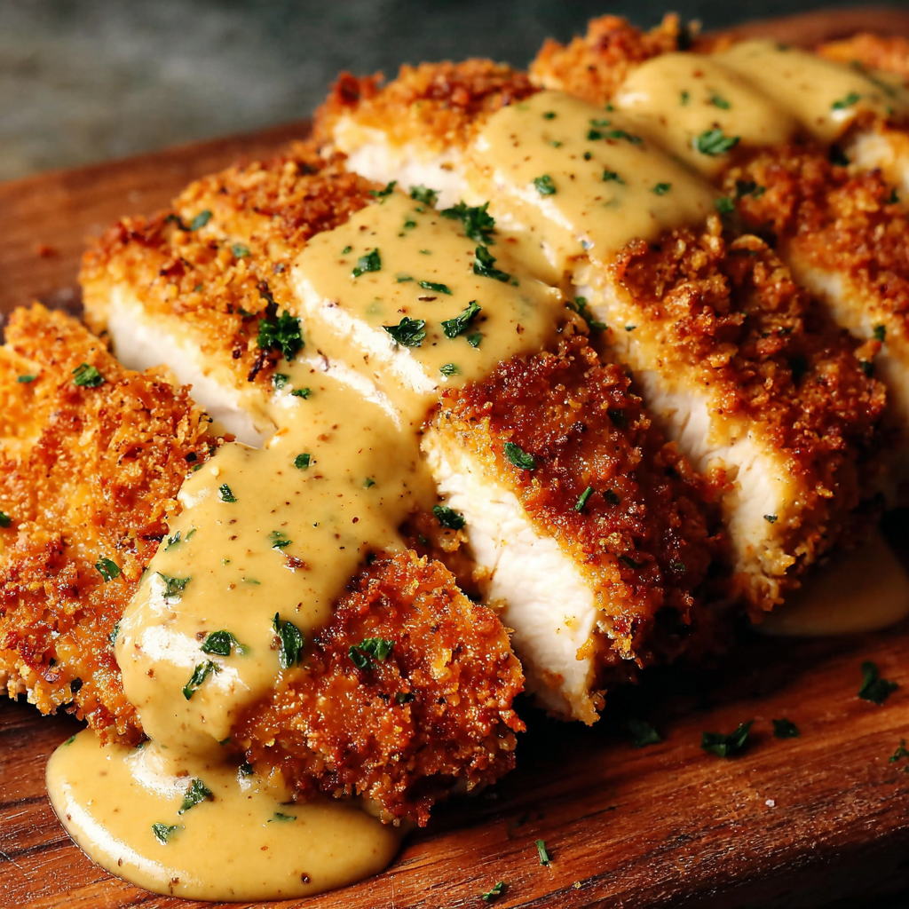 Parmesan Crusted Chicken with Creamy Garlic Sauce Recipe