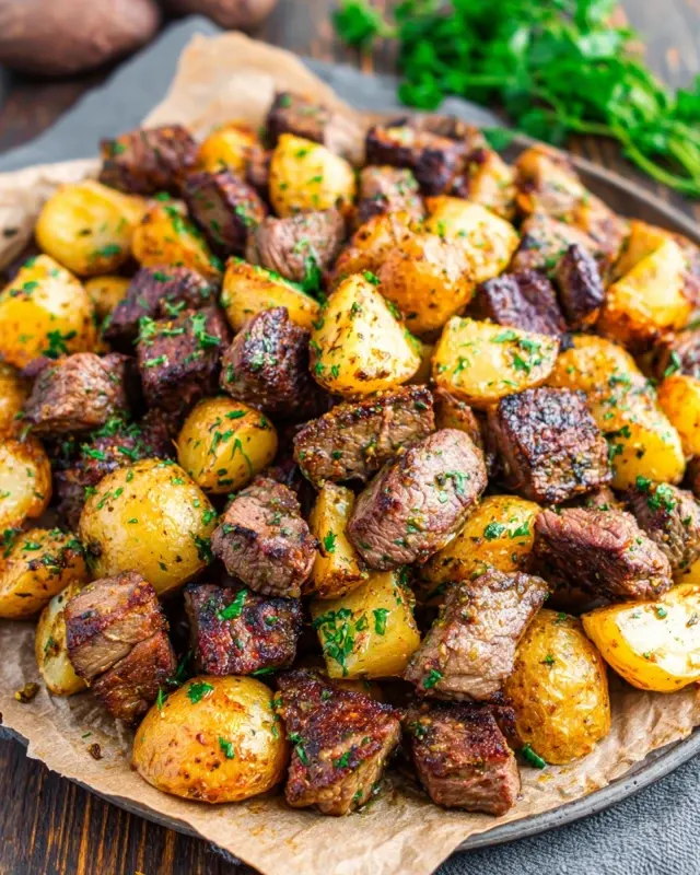 Sheet Pan Garlic Butter Steak Bites with Potatoes Recipe