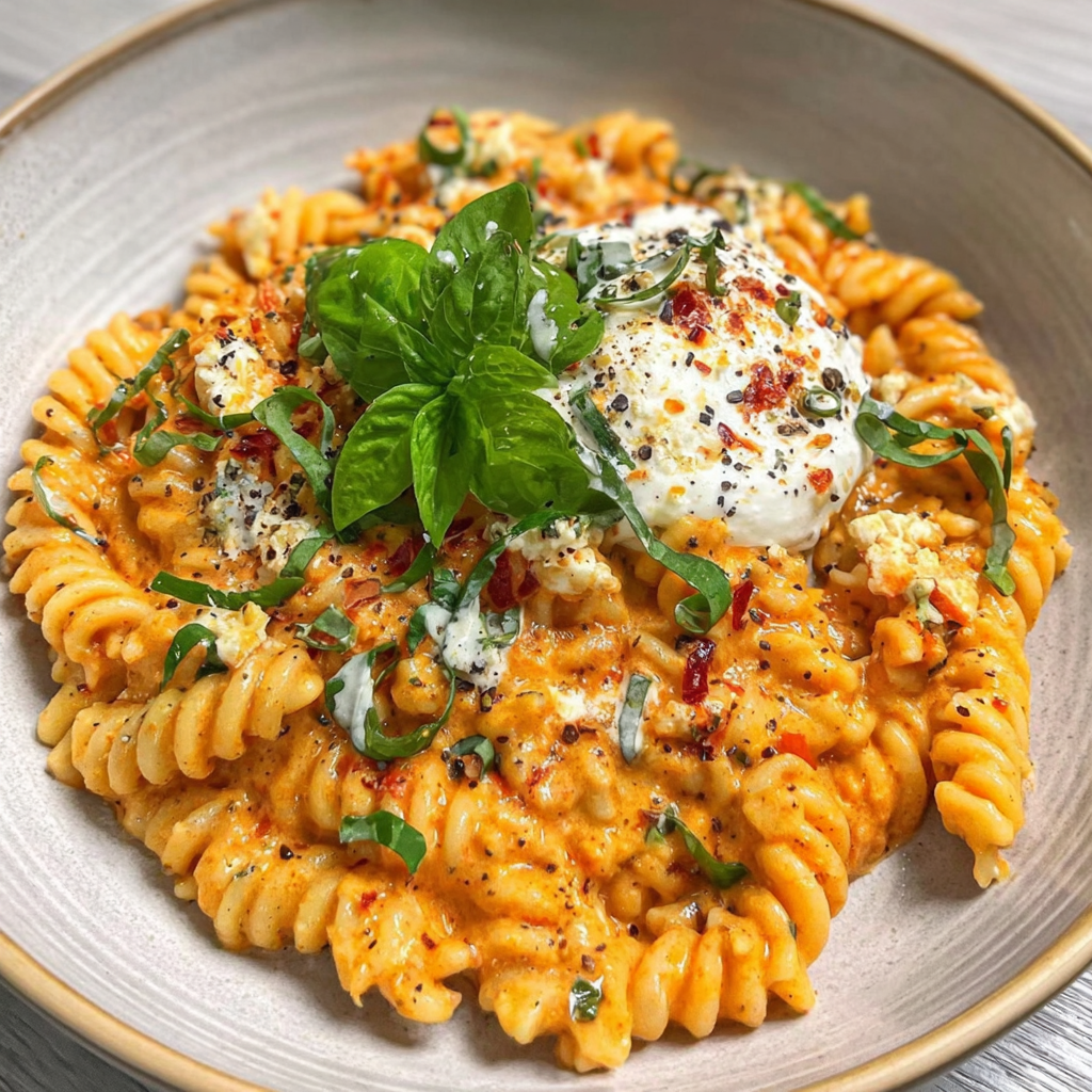 Simple Roasted Red Pepper Pasta with Creamy Burrata