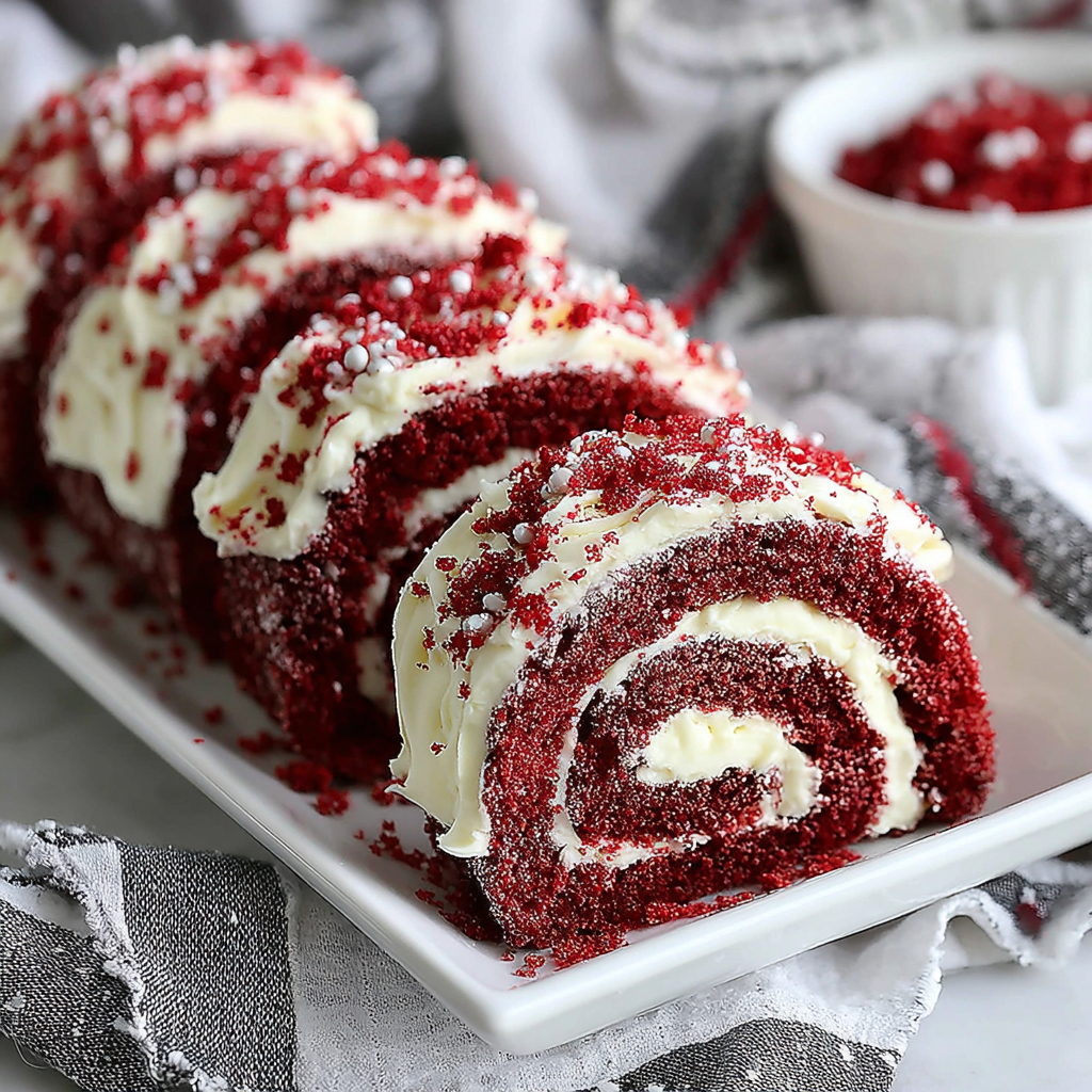 This RED VELVET CAKE ROLL features a rich, velvety texture and a subtle cocoa flavor...