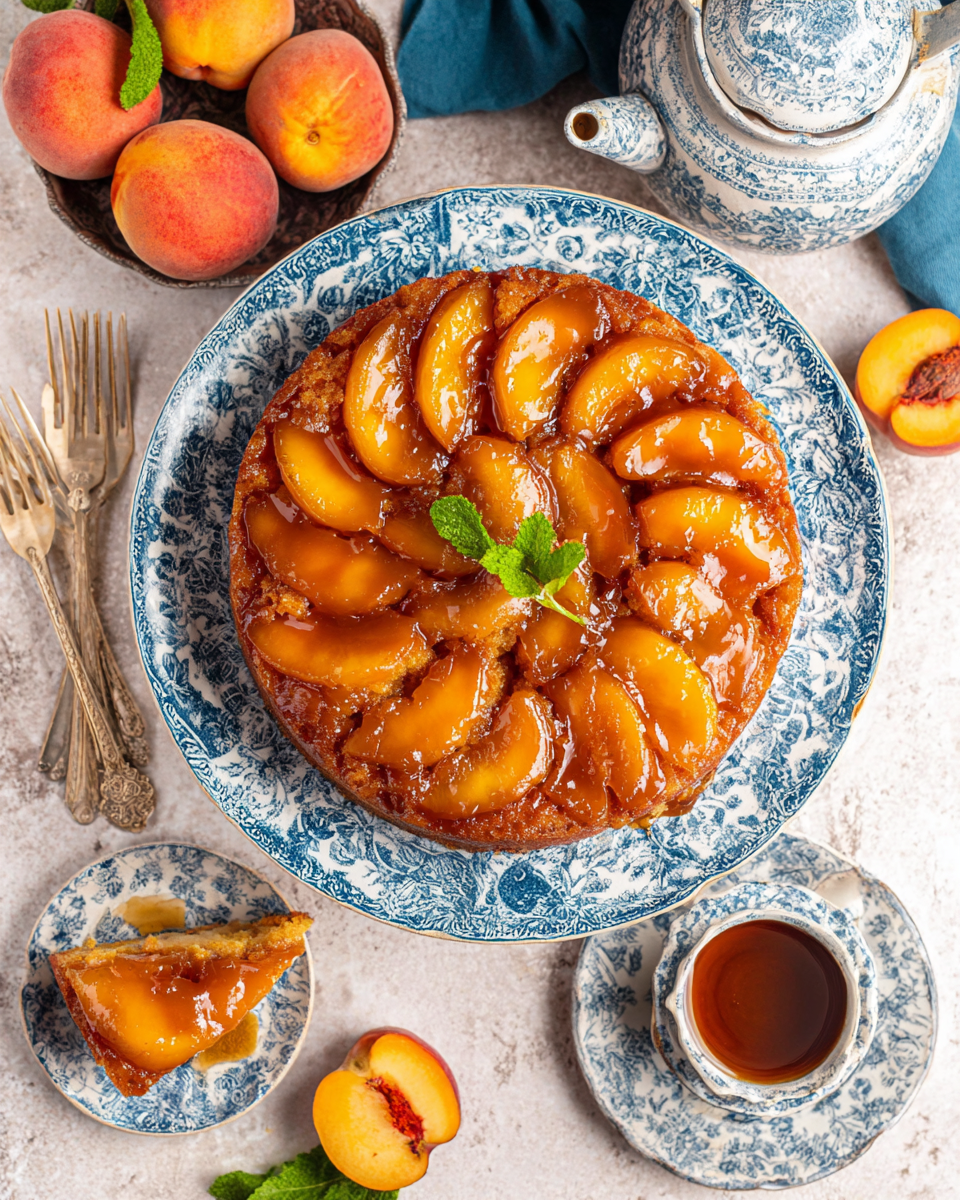 Decadent Bourbon Peach Upside Down Cake made approachable with clear cues, pantry staples, and flexible...