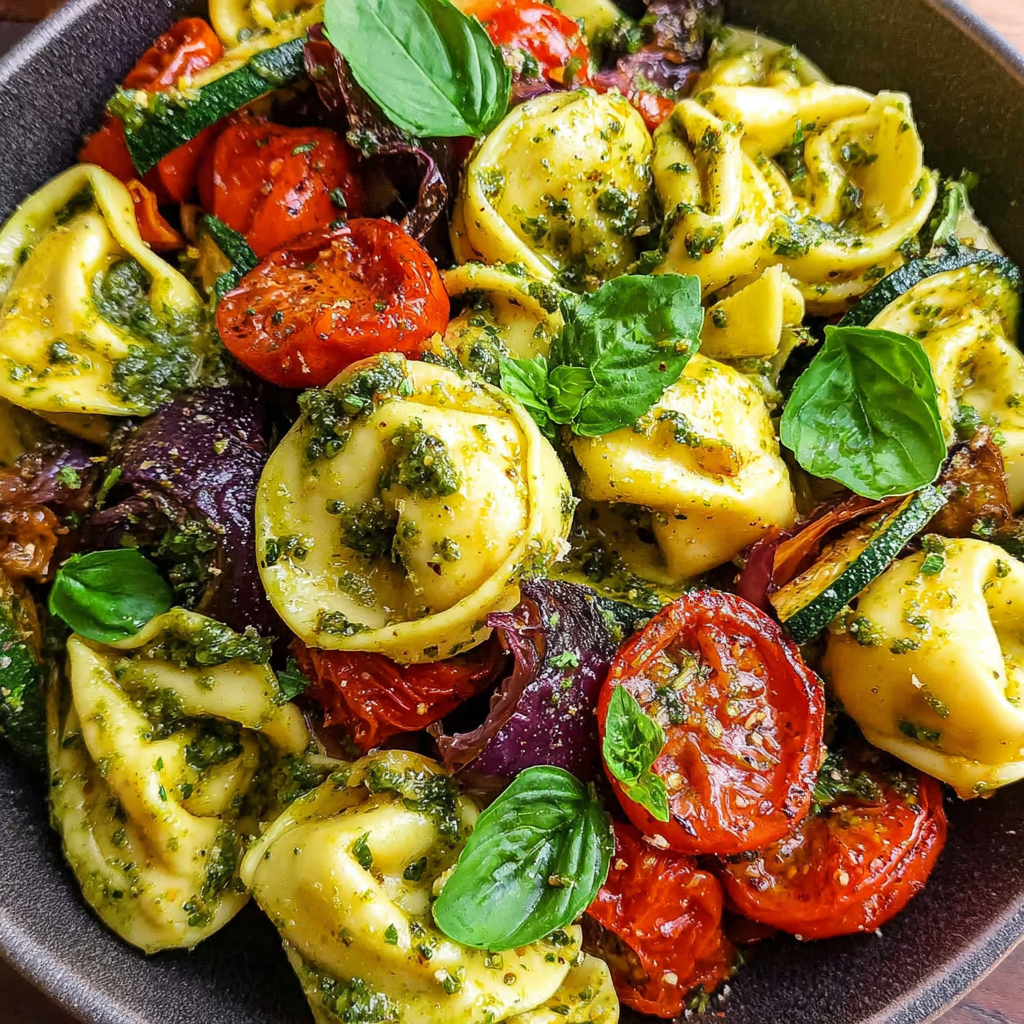 Tortellini with Pesto and Roasted Veggies: A Flavorful and Easy Italian Dish made approachable with...