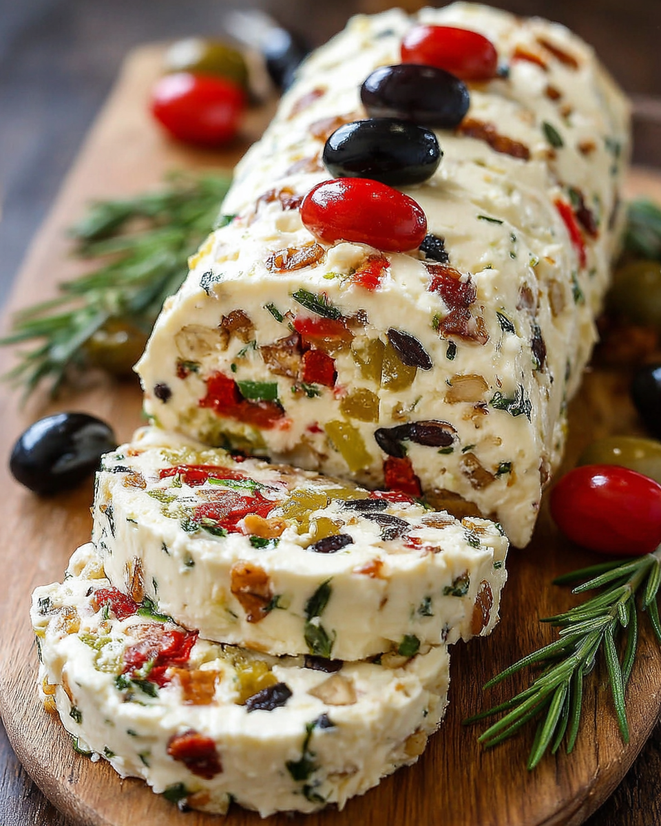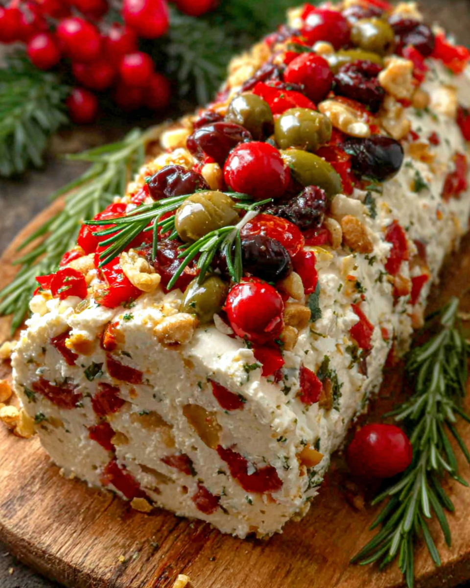 Festive Holiday Antipasto Cream Cheese Log Delight