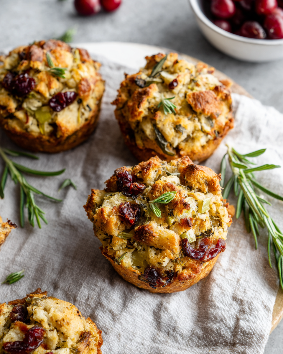 Serving the stuffing muffins warm ensures that their flavors are at their peak. A sprinkle of fresh herbs not only adds color but also a burst of freshness.