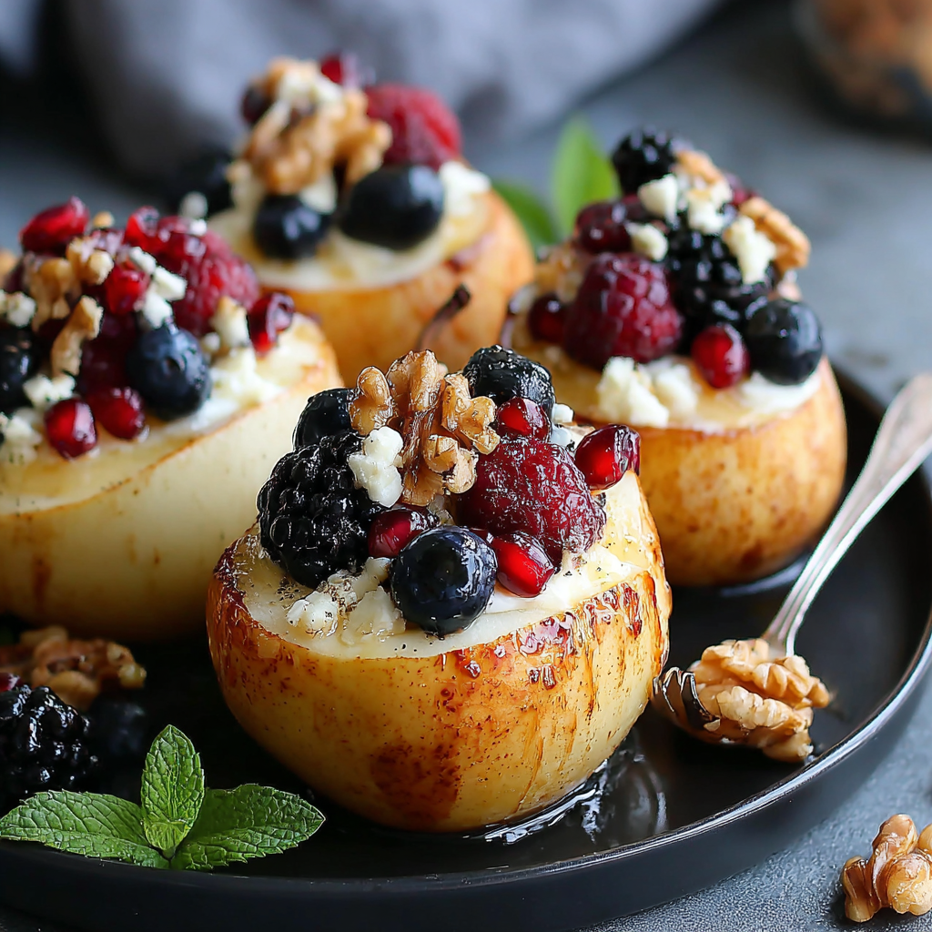Baked pears with berries, honey, walnuts, and blue cheese is an exceptional dish that marries the sweetness of fruit with the savory bite of cheese. This simple yet elegant dessert can elevate any meal, making it a favorite for gatherings or a quiet night in.