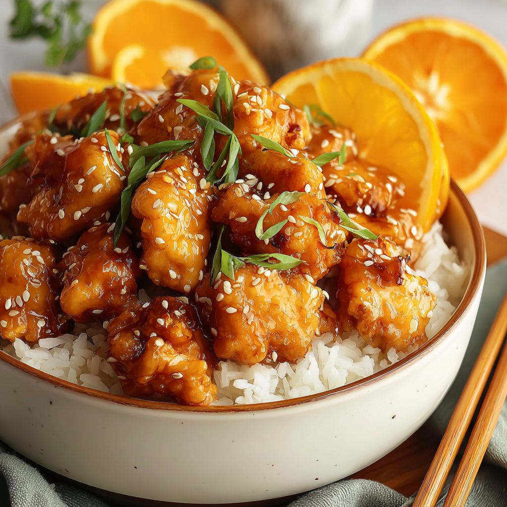 Serve this orange chicken with jasmine rice, steamed broccoli, or a fresh cucumber salad for a delightful contrast to the richness of the dish.