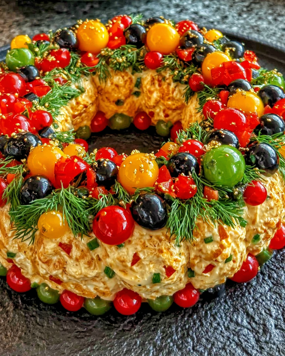 Combining the festive spirit with a fun twist on traditional appetizer platters, this cheese ball wreath features vibrant flavors reminiscent of a taco bar. Creamy, zesty, and packed with textures, it’s a dish that everyone will love.