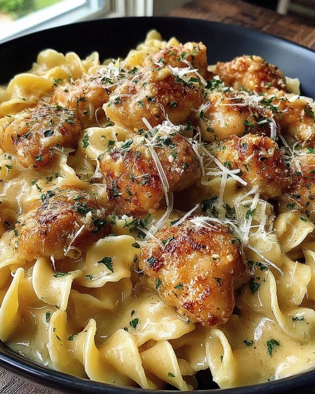 - What makes this recipe shine under search engines (that’s our secret !) Garlic Butter Chicken Bites with Creamy Parmesan Pasta is more than a name; it’s a promise.