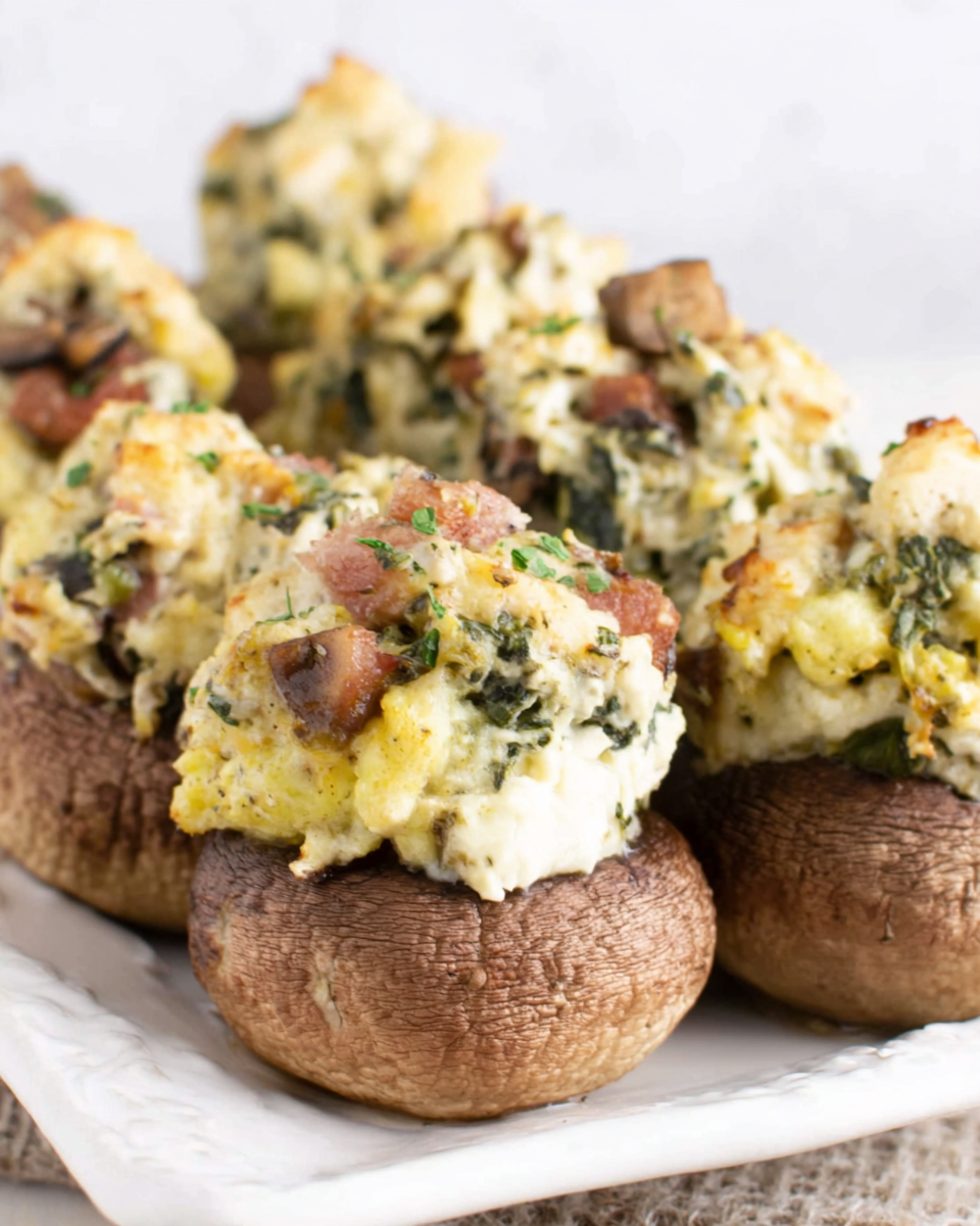 - Fill each mushroom cap generously with the cheese and spinach mixture.